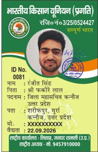 राष्ट्रीय अध्यक्ष भारतीय किसान यूनियन प्रगति