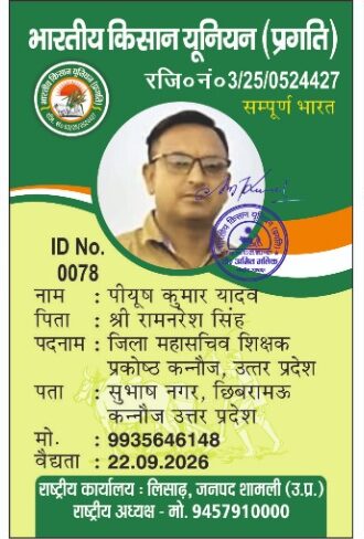 राष्ट्रीय अध्यक्ष भारतीय किसान यूनियन प्रगति